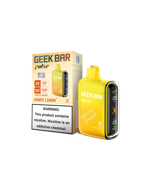Geek Bar Pulse Grape Lemon Geek Bar Pulse Grape Lemon is designed to be portable and easy-to-use and offers as much as 600 puffs of smooth, tart flavour. There is no requirement for refills or recharges it is perfect for those who are traveling. If you are a fan of fruity flavors which deliver sweetness as well as the tang of a fruit, this vape certain to please.